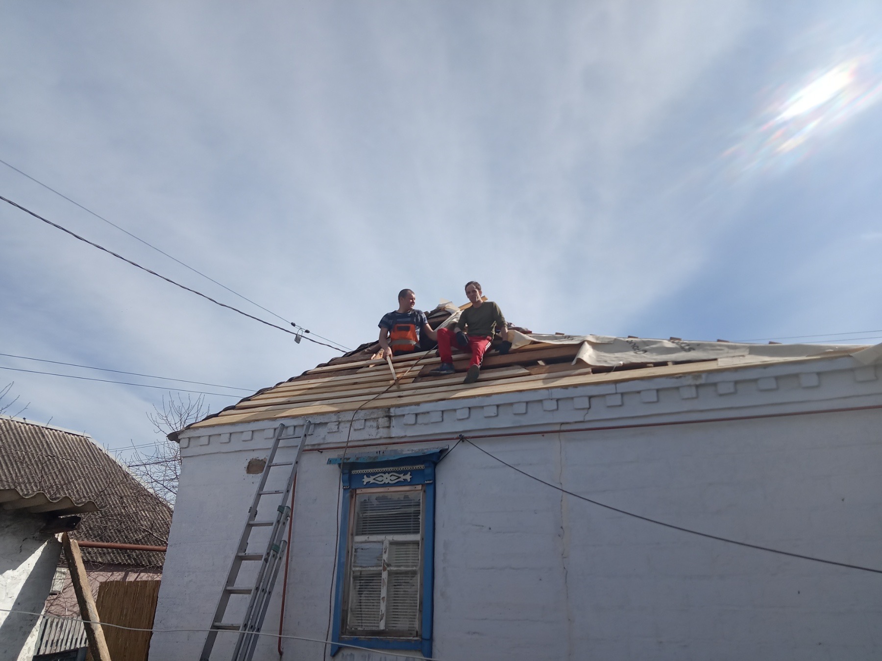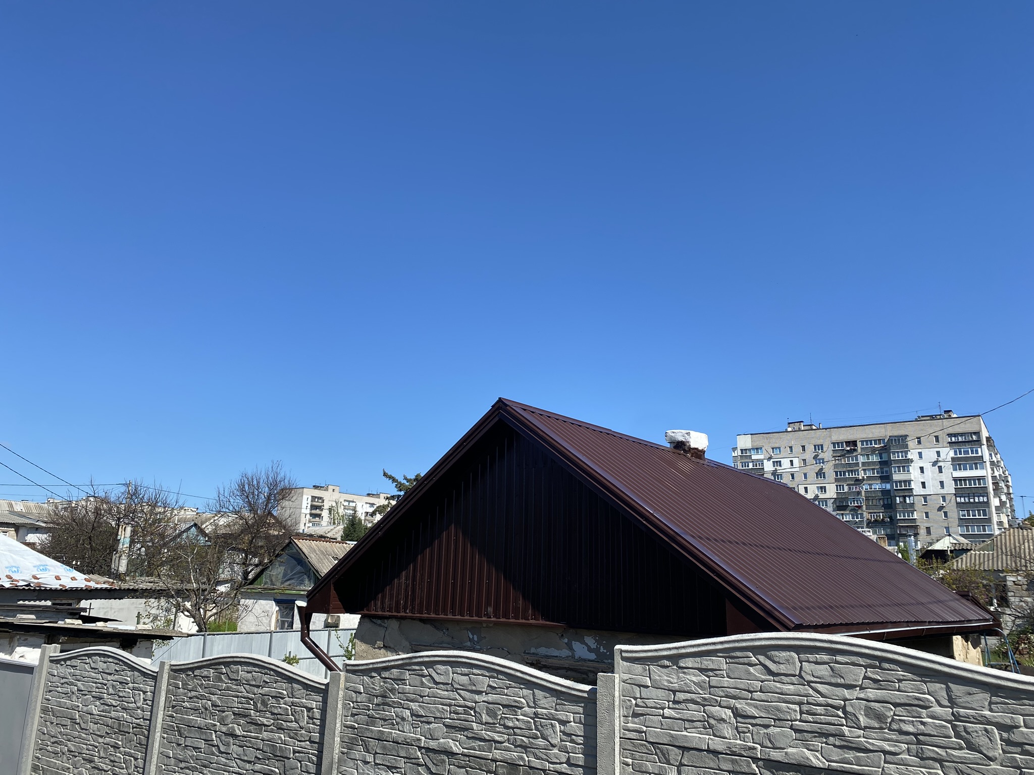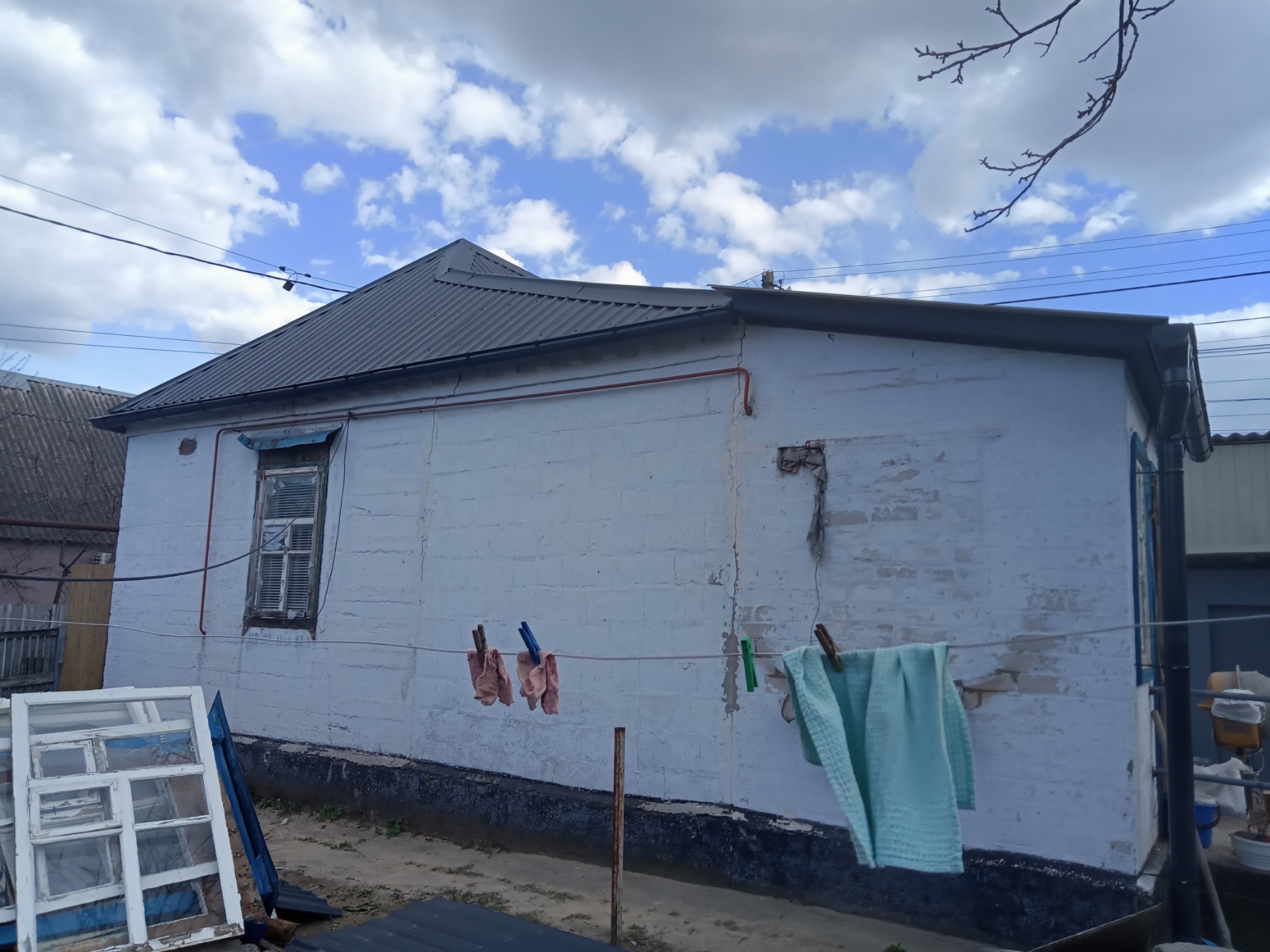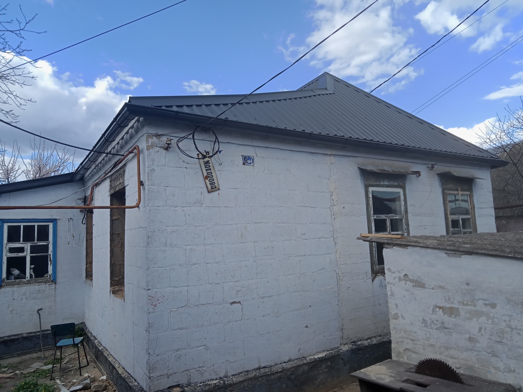 Кровля крыши частного дома. Покрытие кровли металлочерепицей: демонтаж шифера, демонтаж старой обрешётки, ремонт стропильной системы, устройство перекрытия на пристройке к дому, монтаж гидроизоляции, монтаж новой обрешётки, монтаж металлочерепицы, монтаж свесов кровли, монтаж водосточной системы. Общая площадь кровли 154 м 2. (Днепр, АНД район). Март, 2023 год