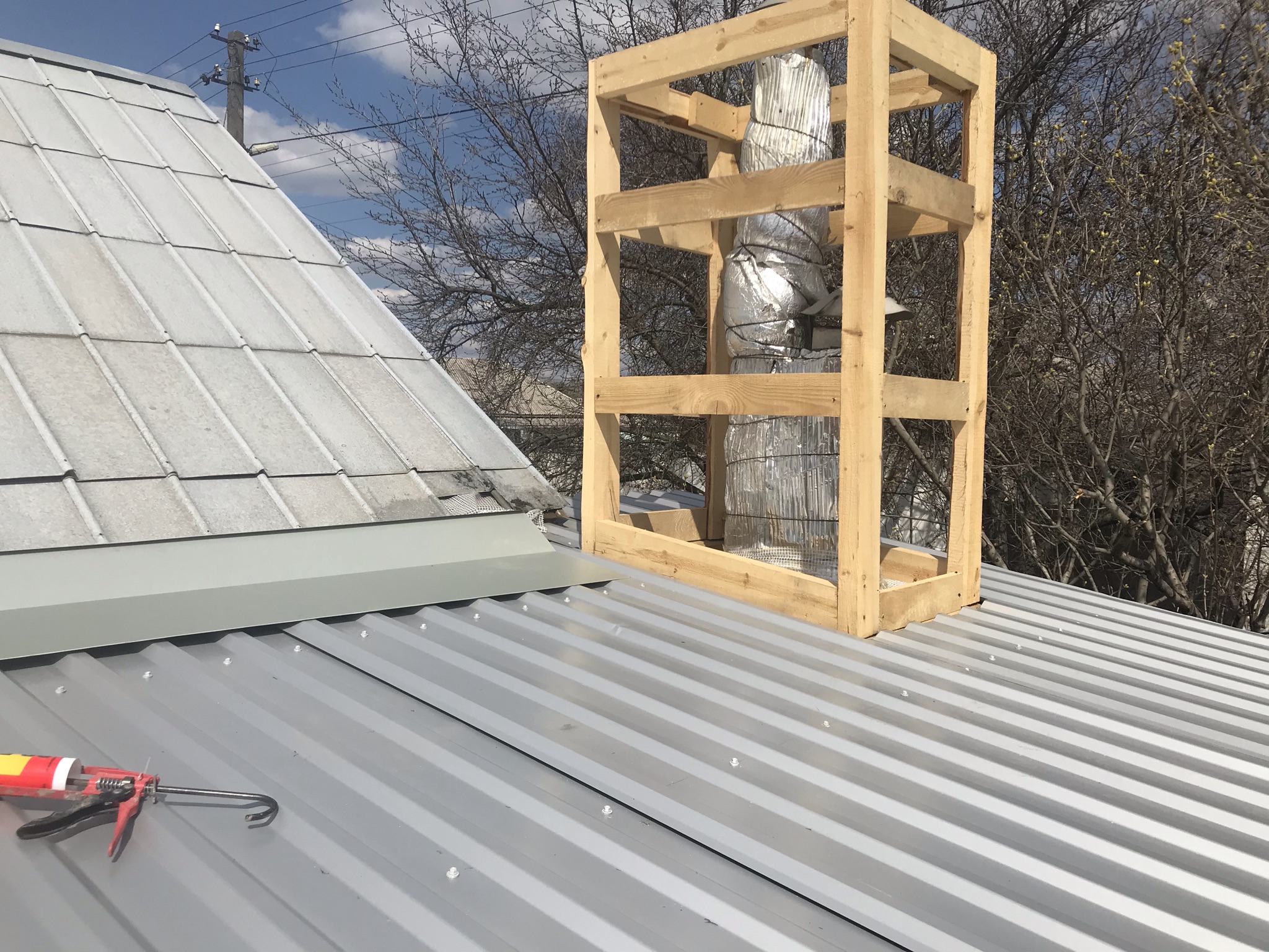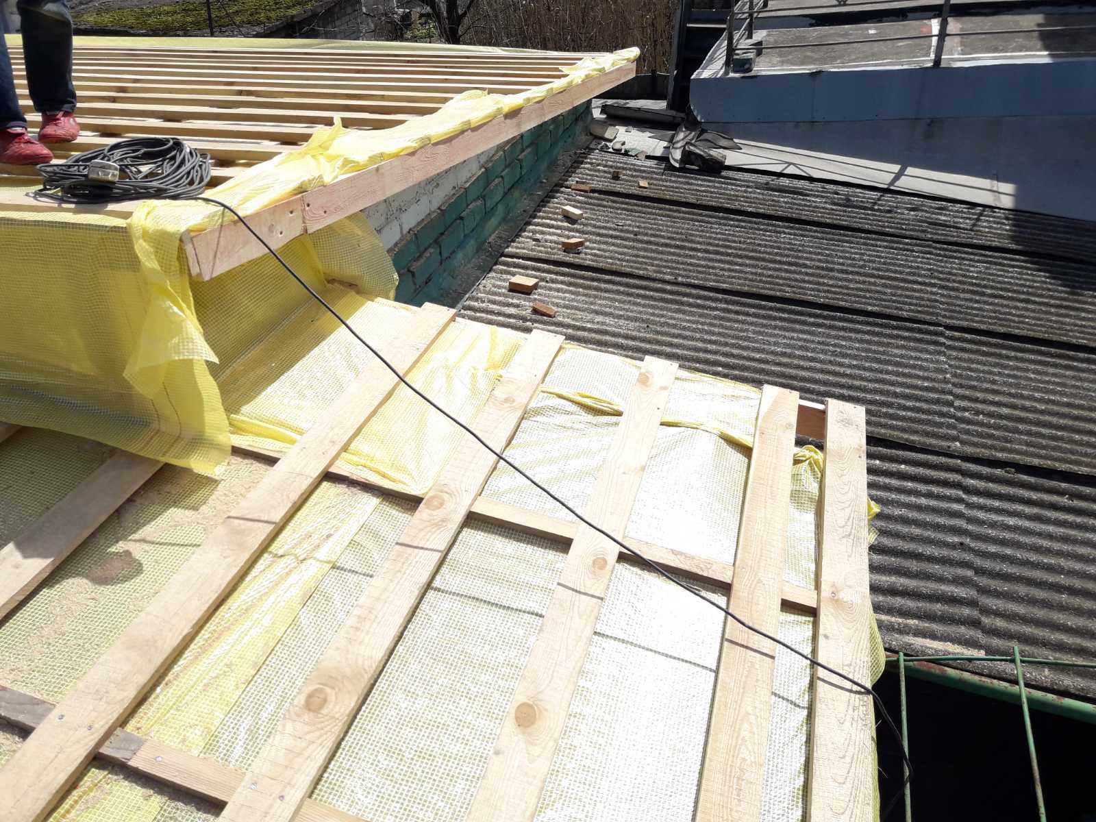 Кровля крыши пристройки дома: замена шифера на профнастил (15 м 2)