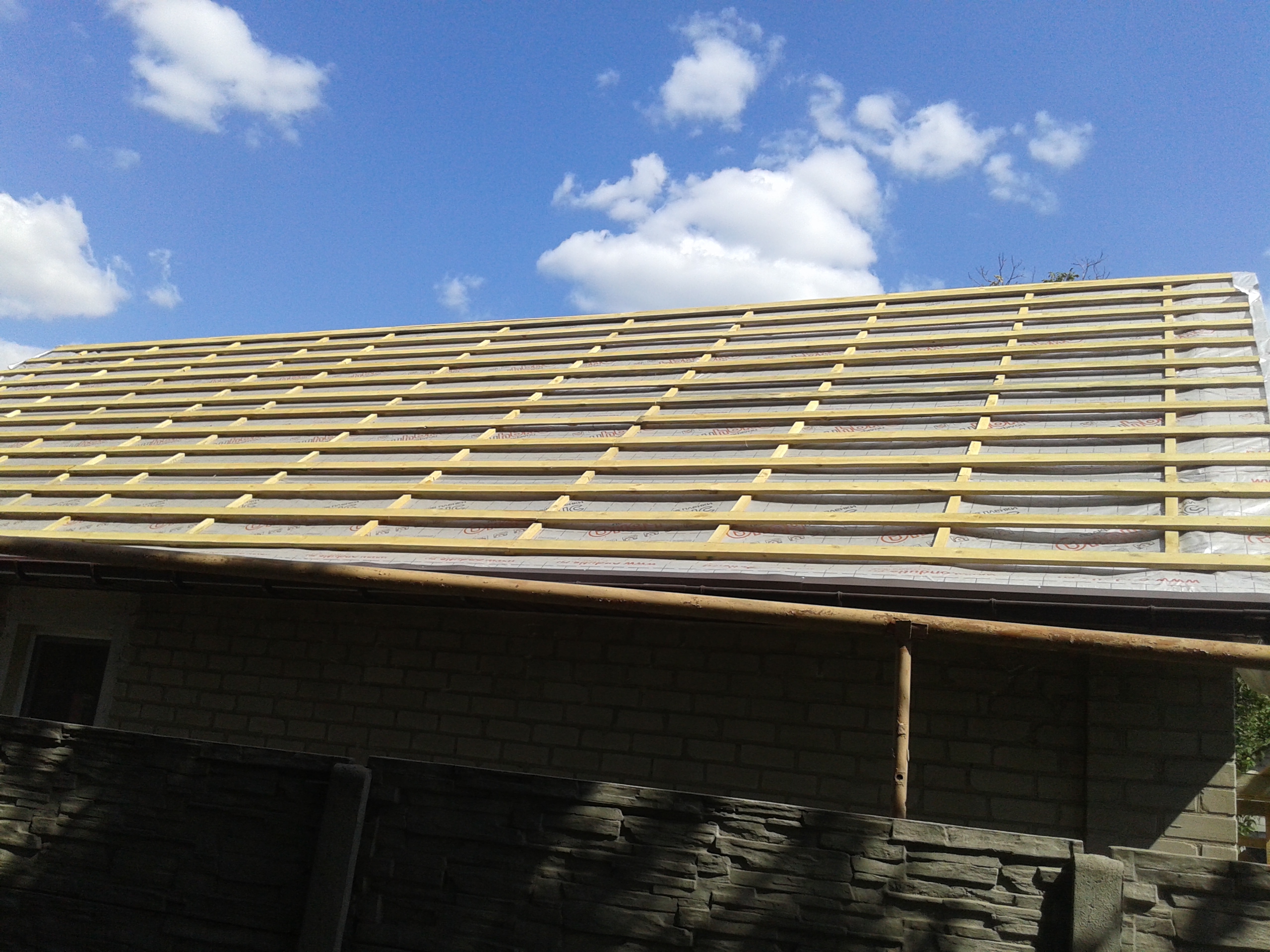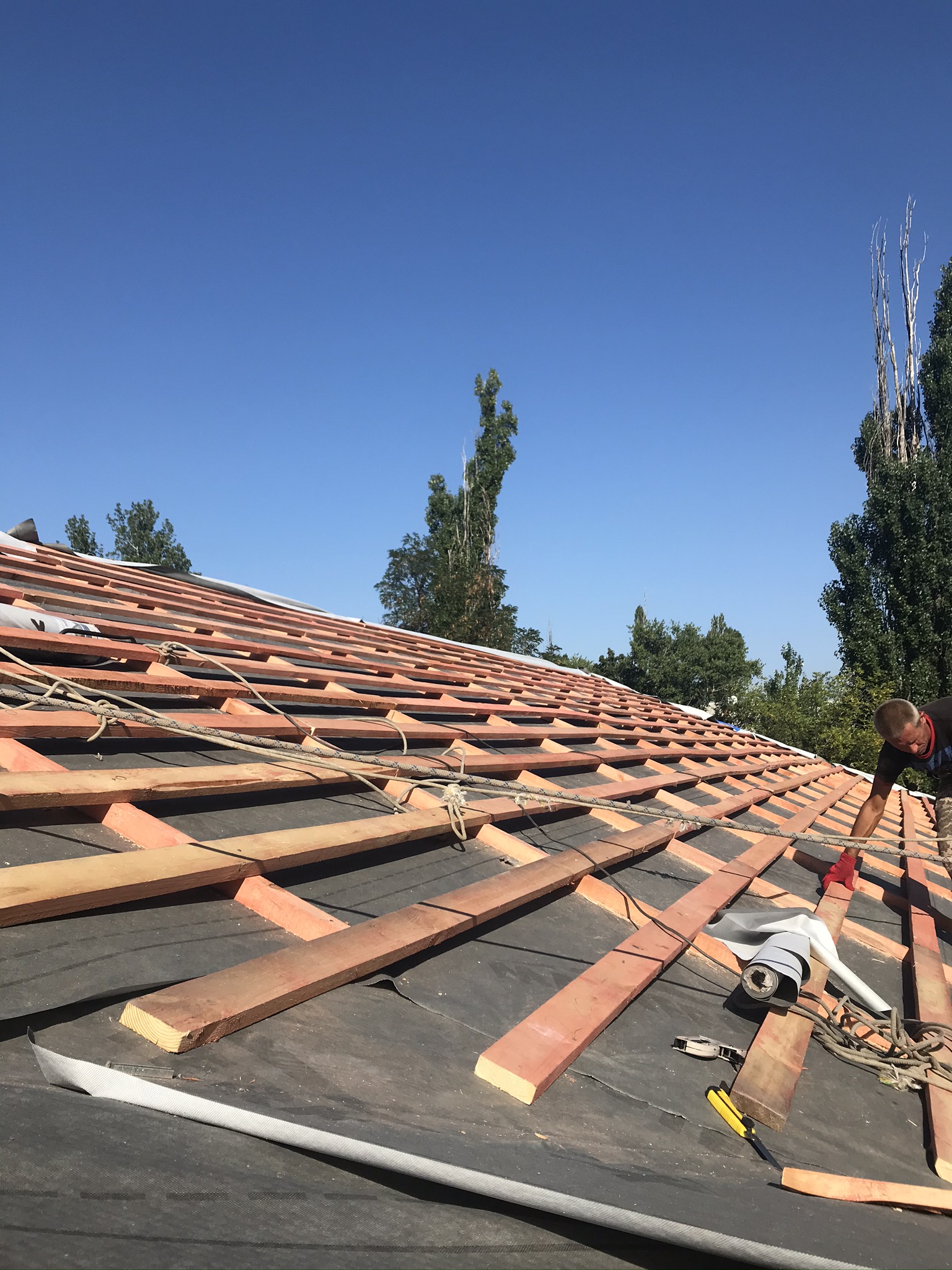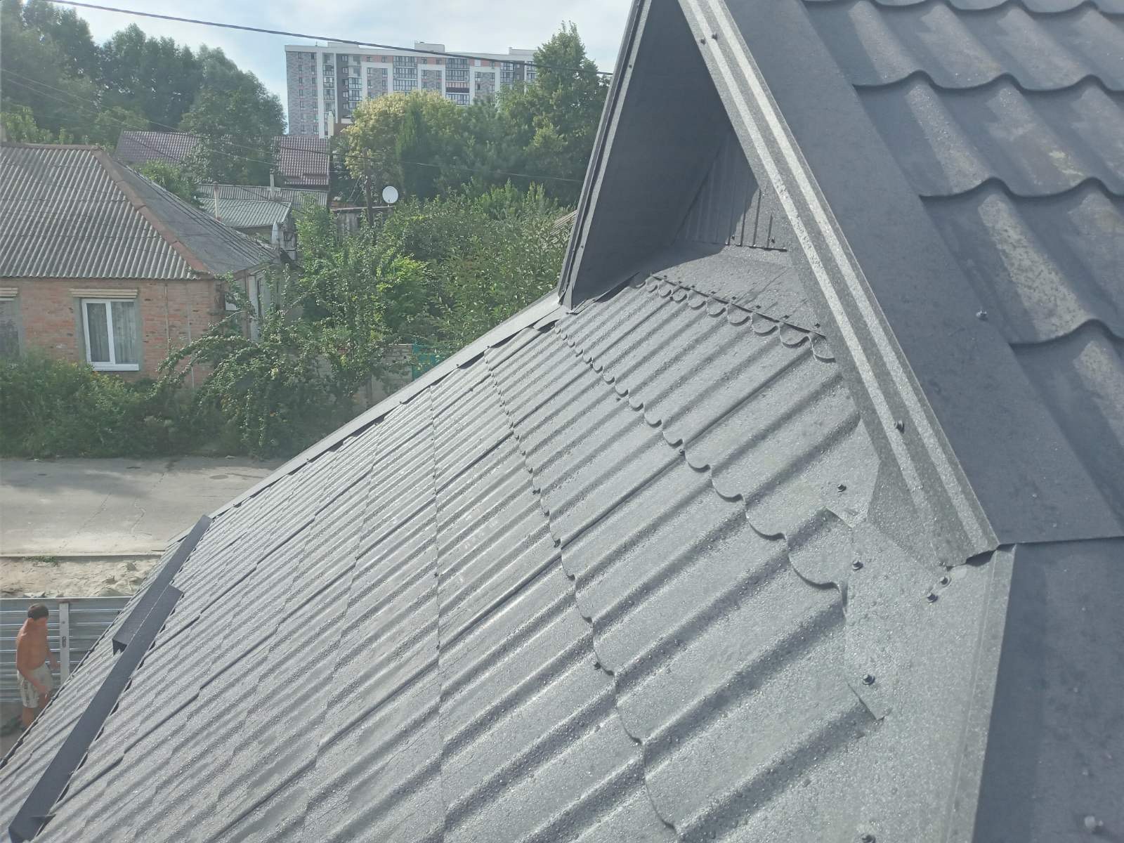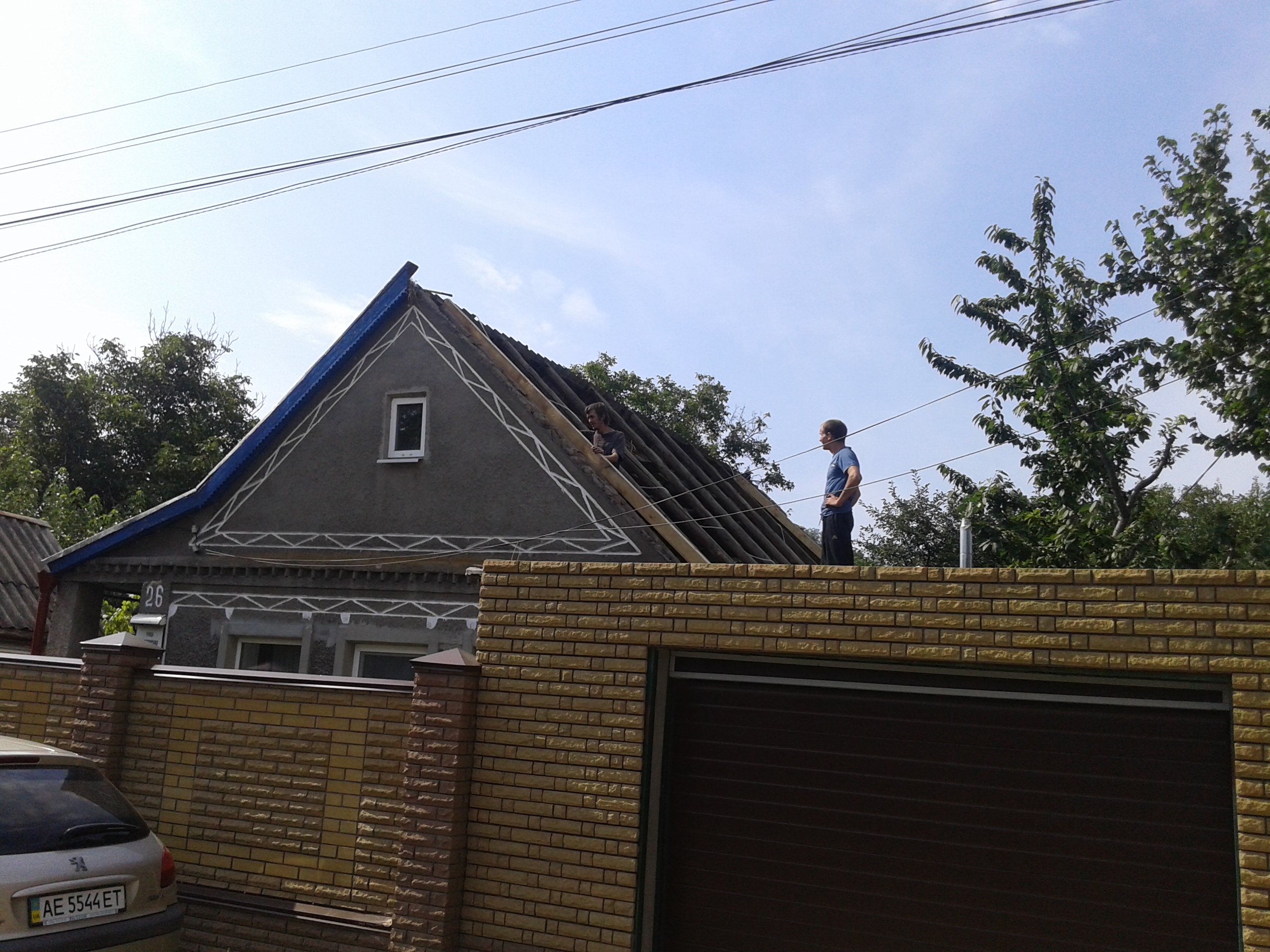 Кровля крыши частного дома: демонтаж шифера, демонтаж старой обрешётки, ремонт стропильной системы, строительство пристройки (кухни) к дому, монтаж гидроизоляции, монтаж новой обрешётки, монтаж металлочерепицы, монтаж свесов кровли, монтаж водосточной системы. Общая площадь кровли 210 м 2 (дом и летняя кухня) (срок выполнения работ 25 – 30рабочих дней). Днепр, ж / м “Победа”.