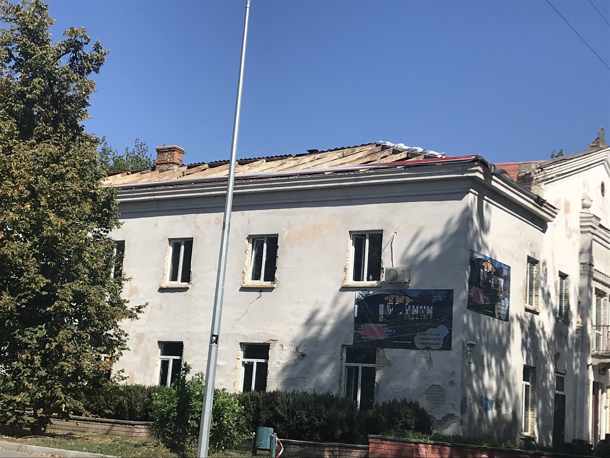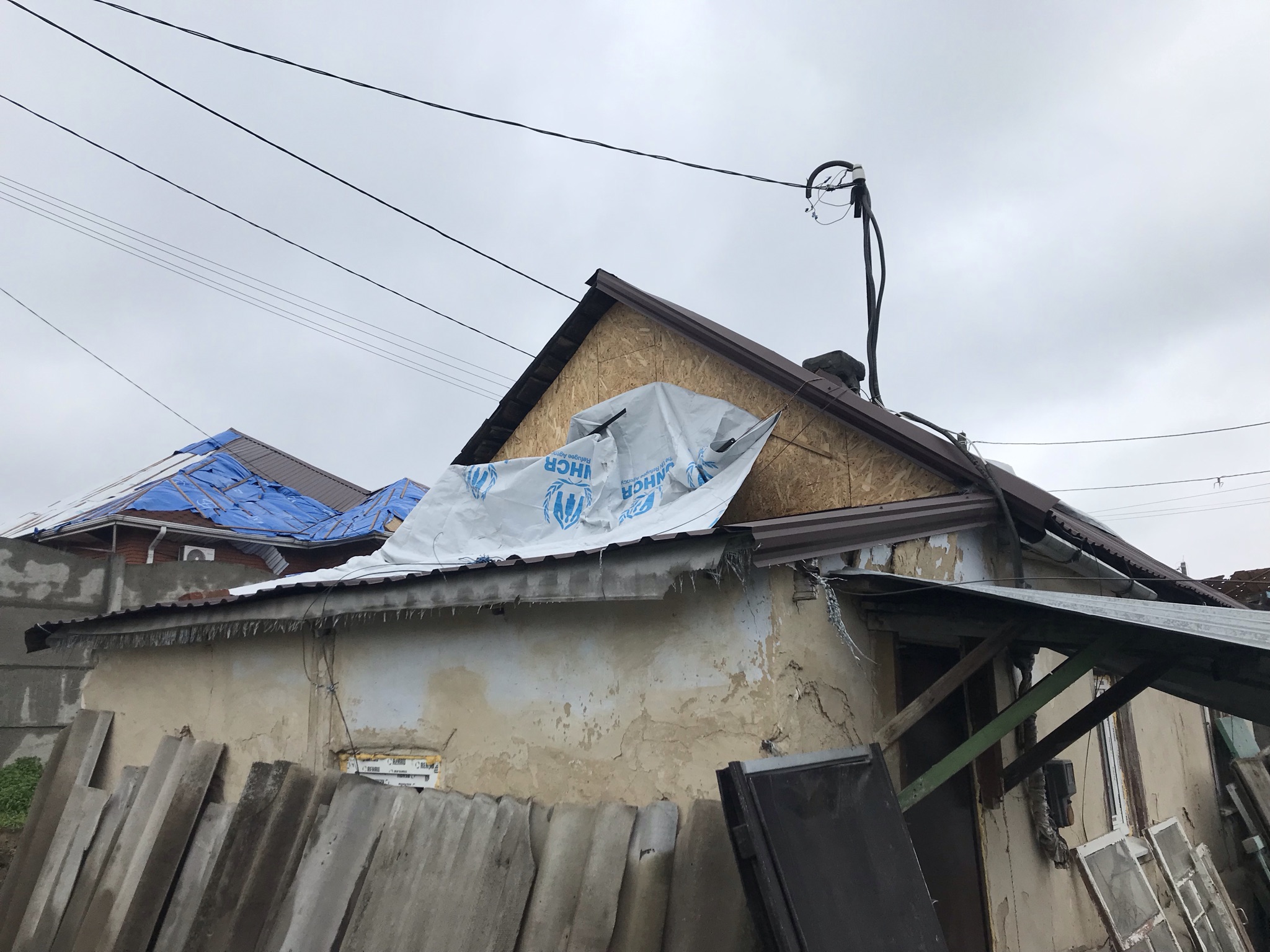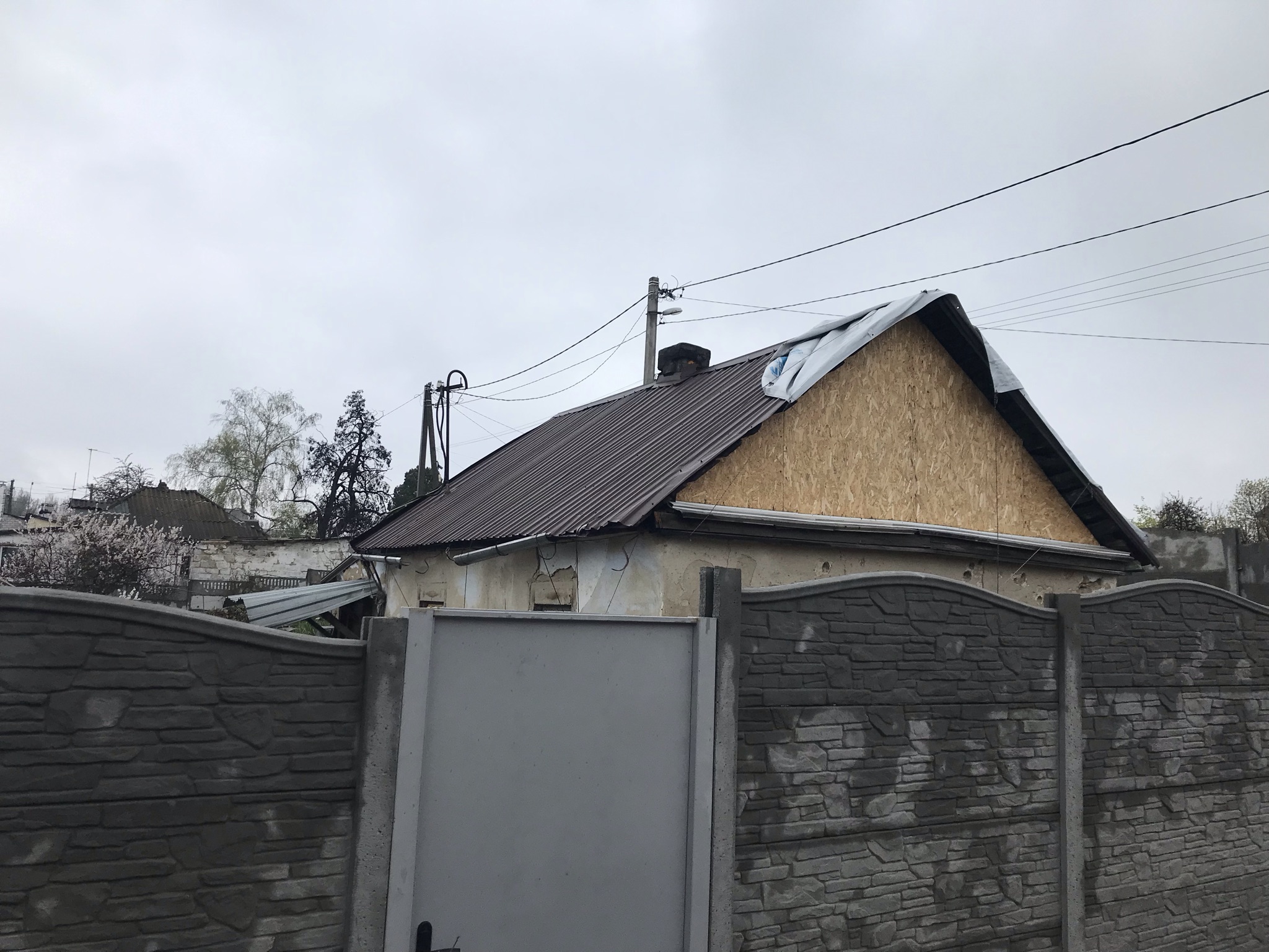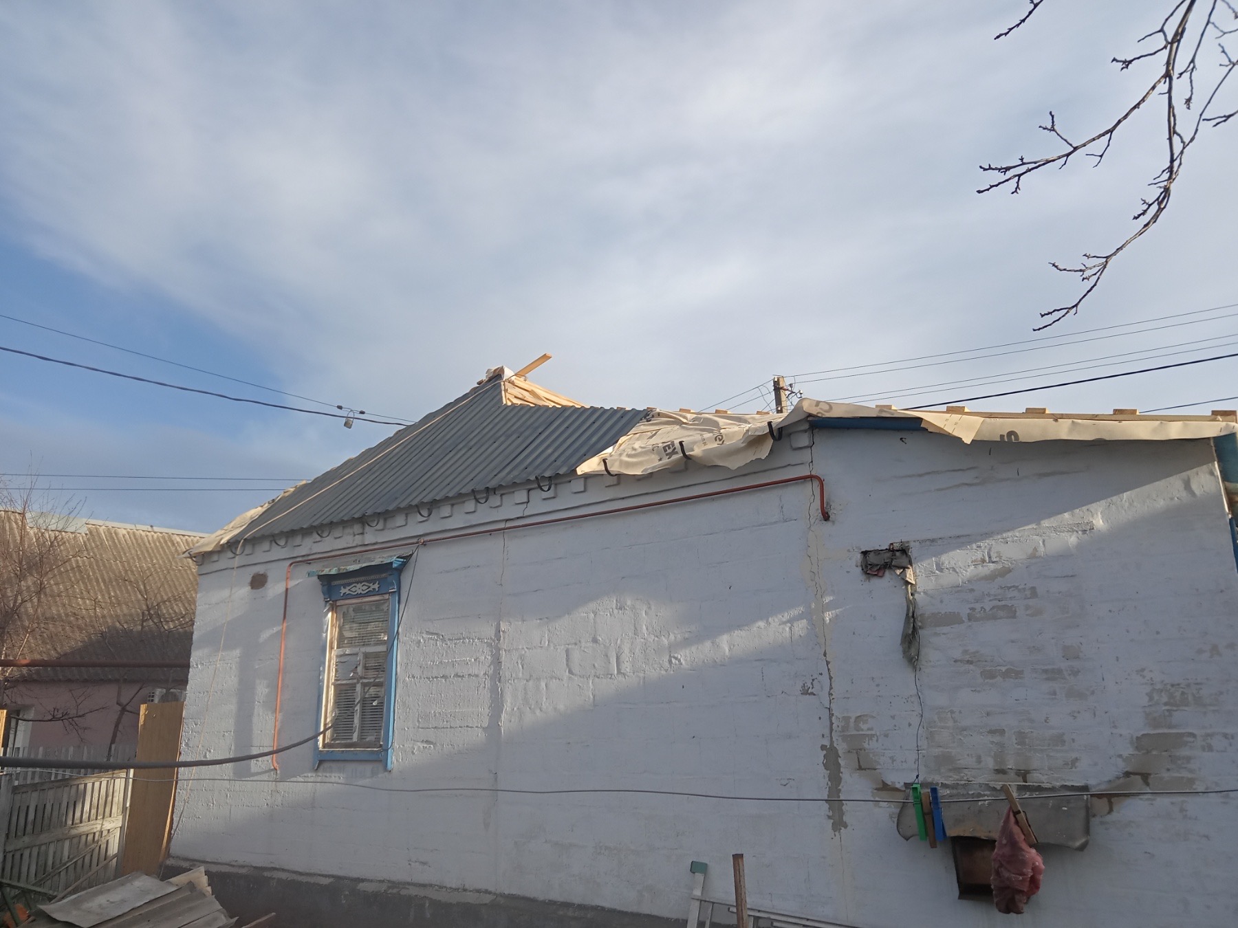 Кровля крыши частного дома. Повреждение дома после “рашисткого” прилёта !!! Новая кровля: демонтаж старой кровли, монтаж новой стропильной системы, монтаж каркаса фронтонов на кровле, монтаж гидроизоляции, монтаж обрешётки, монтаж профнастила, монтаж свесов кровли, монтаж водосточной системы. Общая площадь кровли 52 м 2 (срок выполнения работ 10 – 12 рабочих дней). Днепр, АНД Район. Апрель 2024 г.