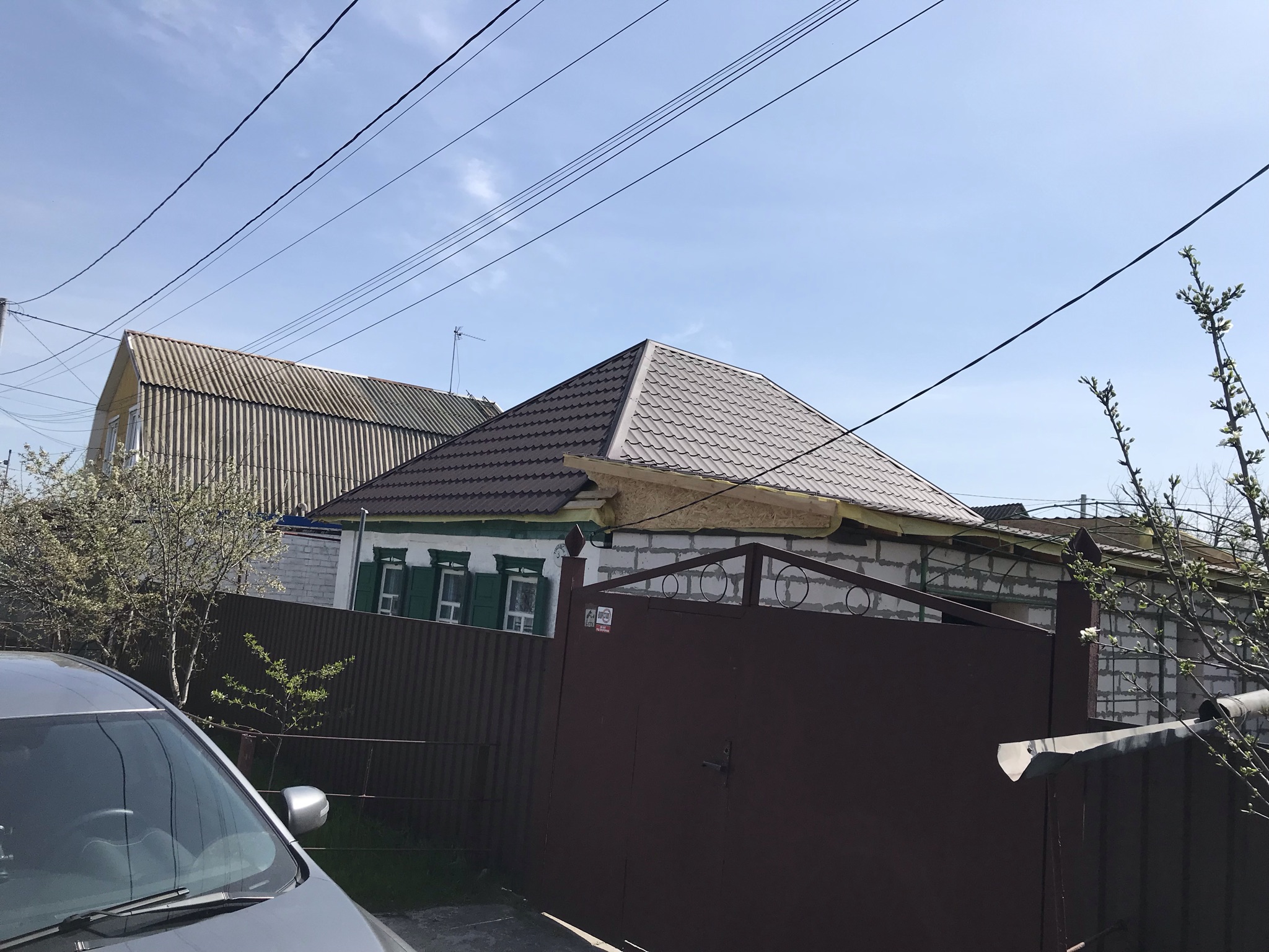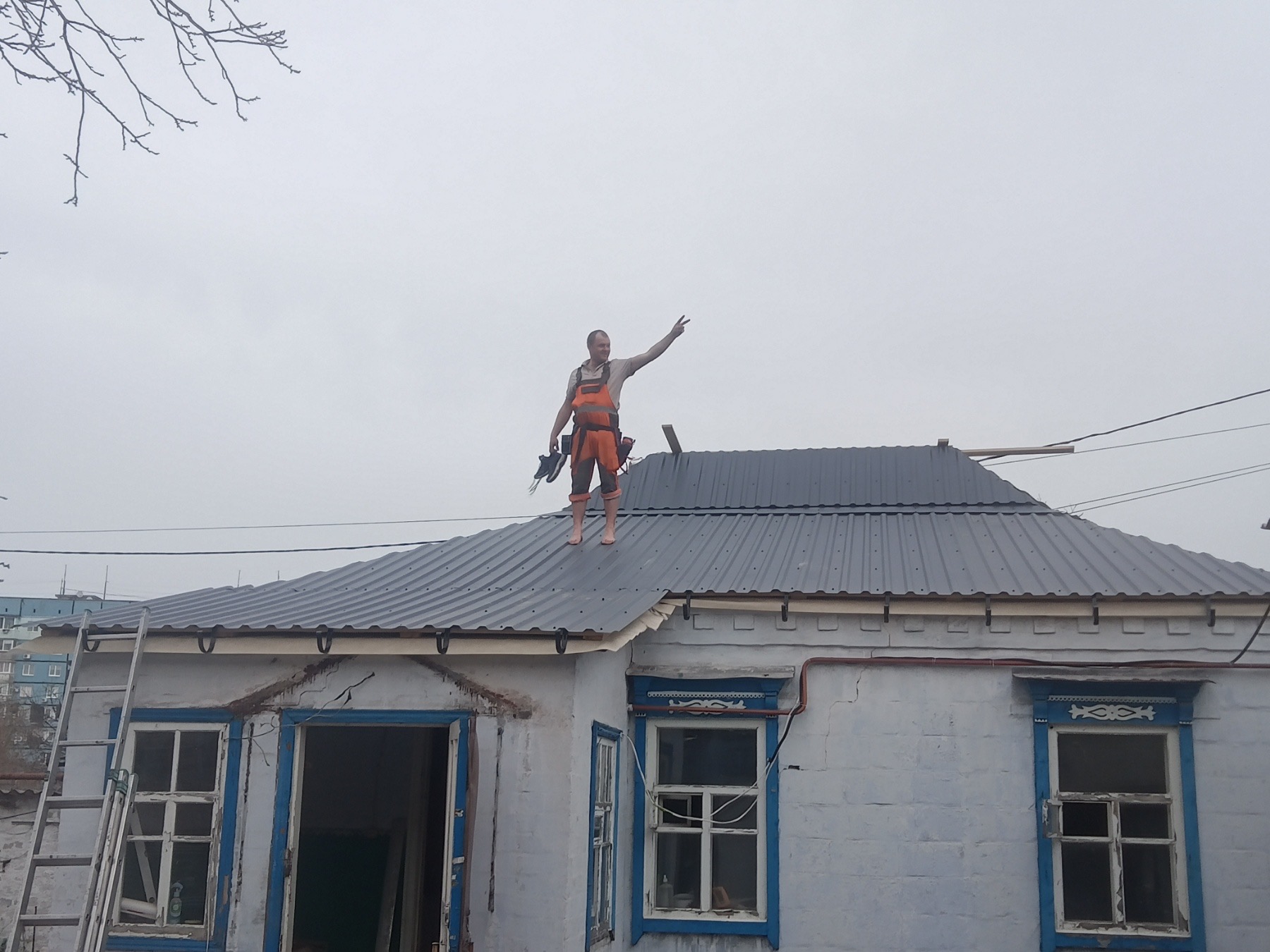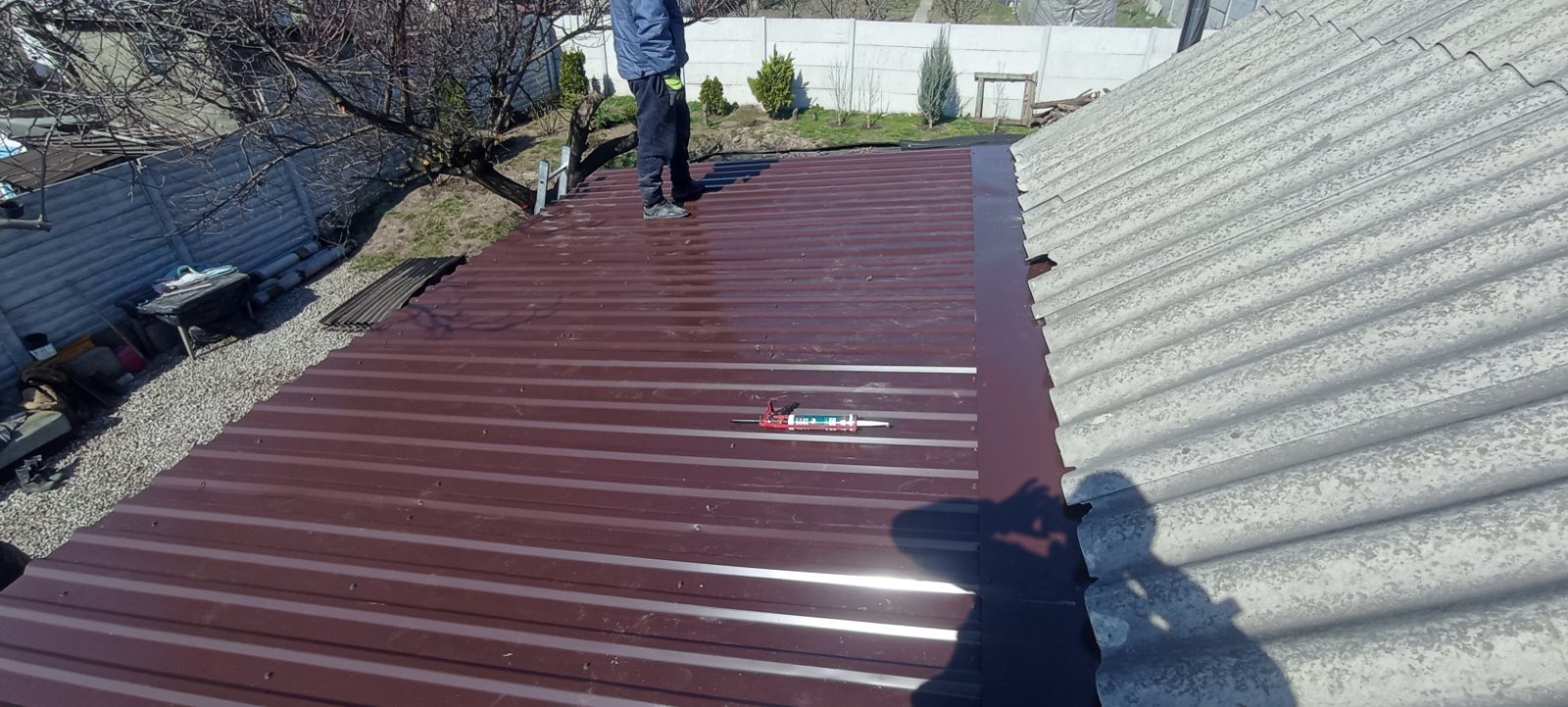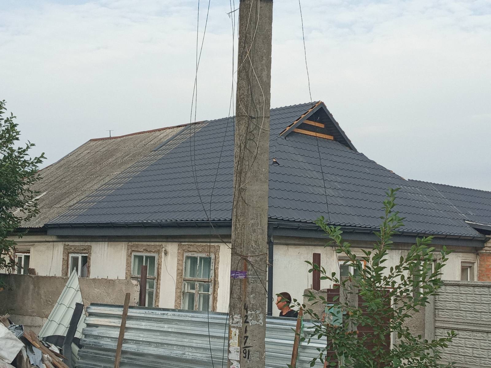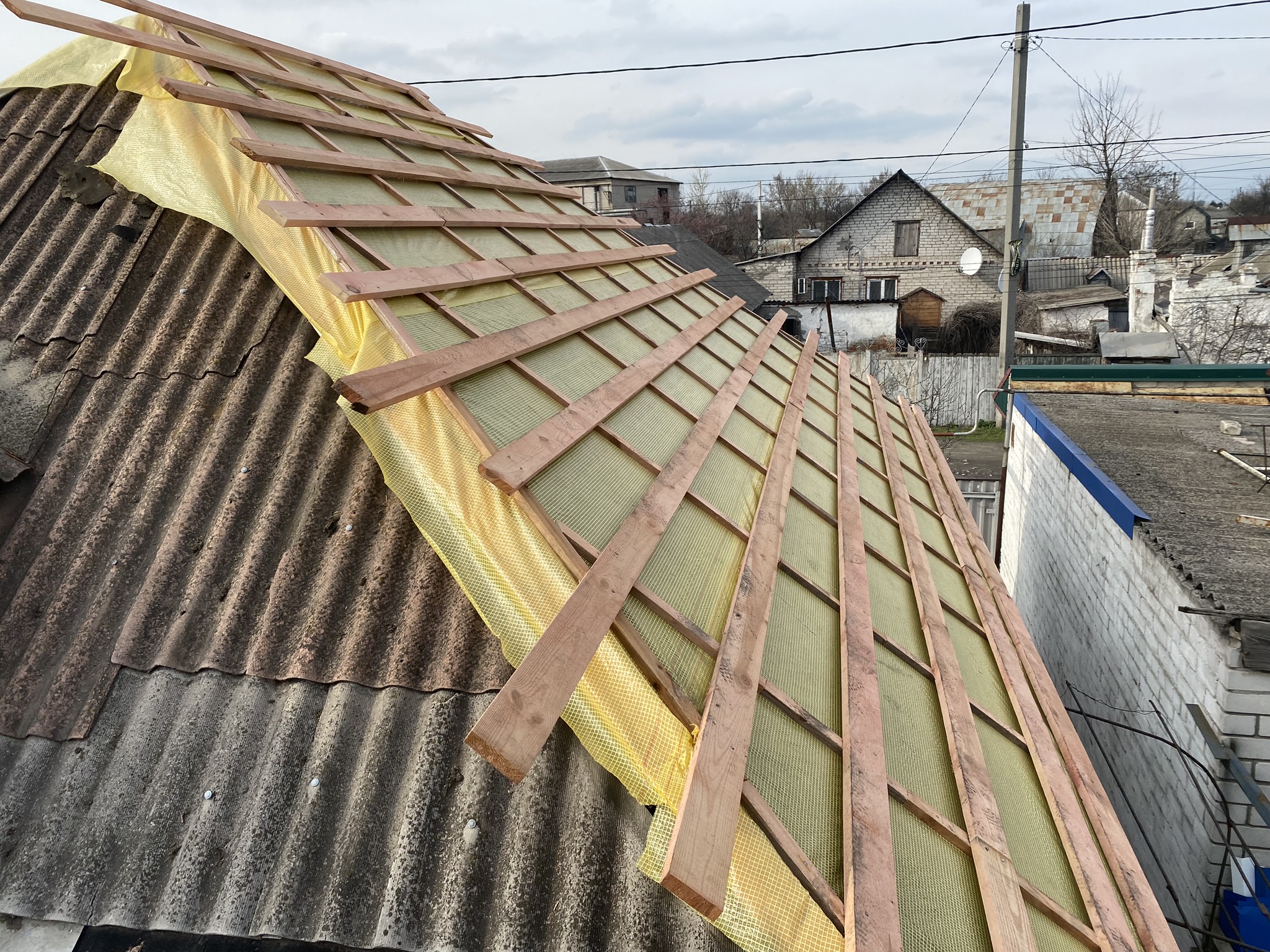 Кровля крыши и частного дома: демонтаж шифера, демонтаж (частично) старой обрешётки, монтаж (на части кровли) гидроизоляции, монтаж новой обрешётки, монтаж профнастила, монтаж свесов кровли, монтаж водосточной системы. Общая площадь кровли 75- 80 м 2 (срок выполнения работ 6 – 7 рабочих дней). Днепр, ж / м “Парус”. Март 2024 г.