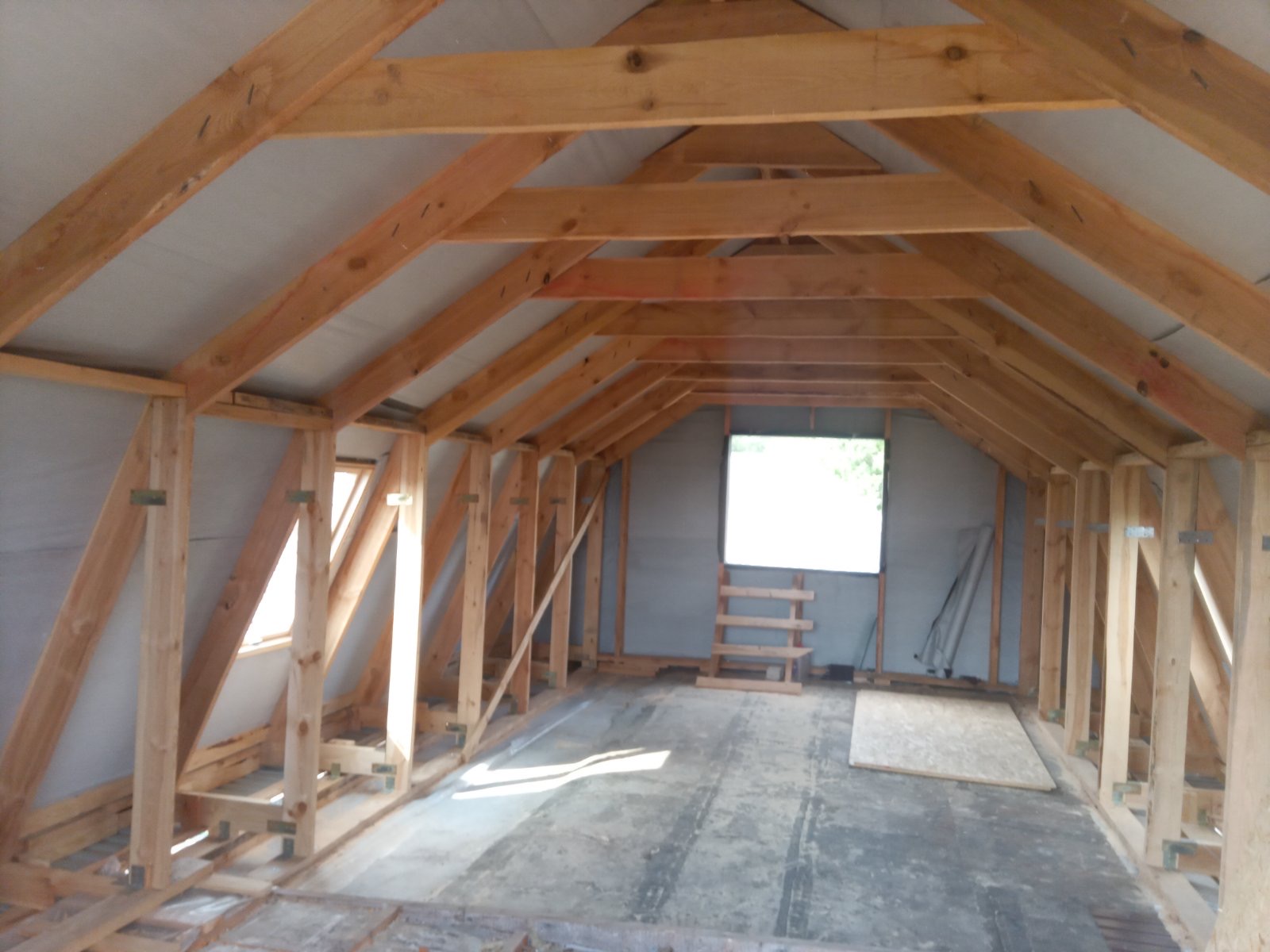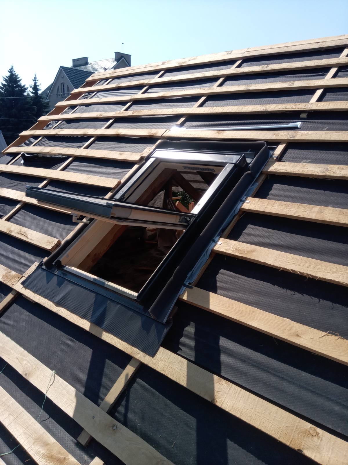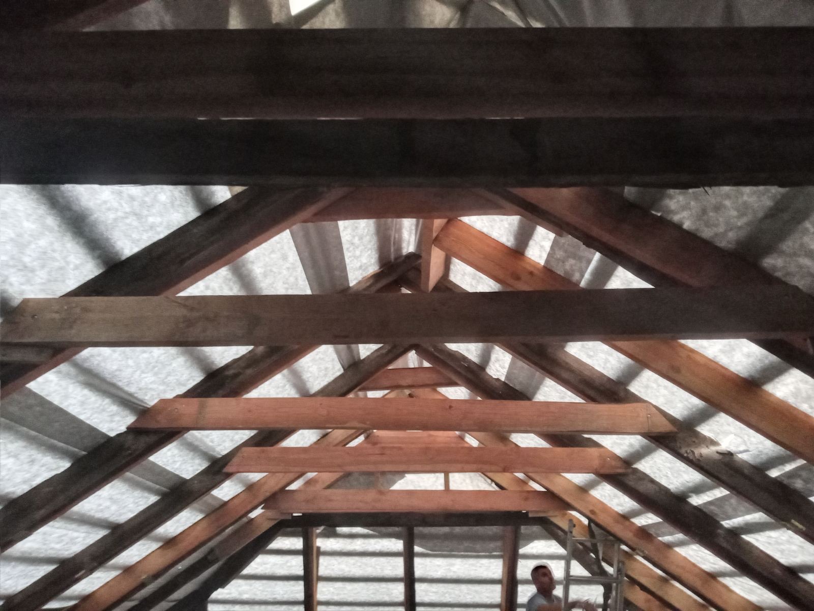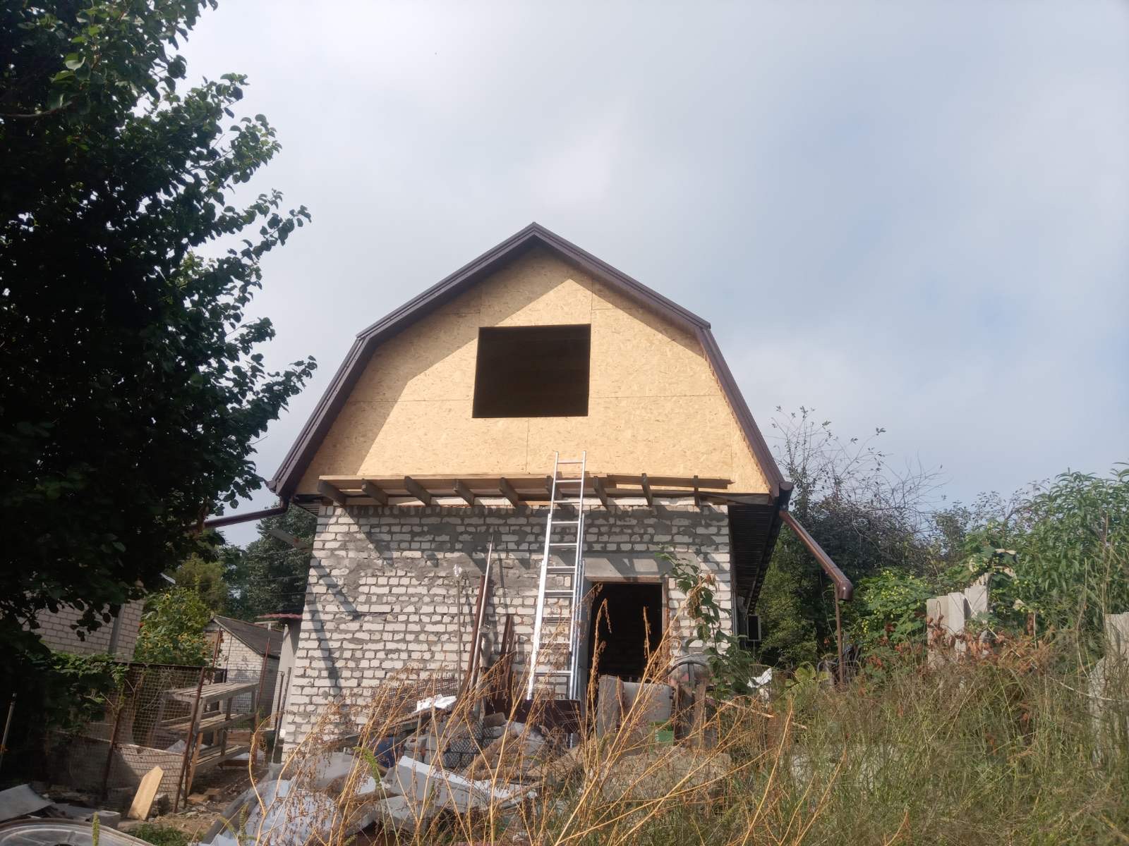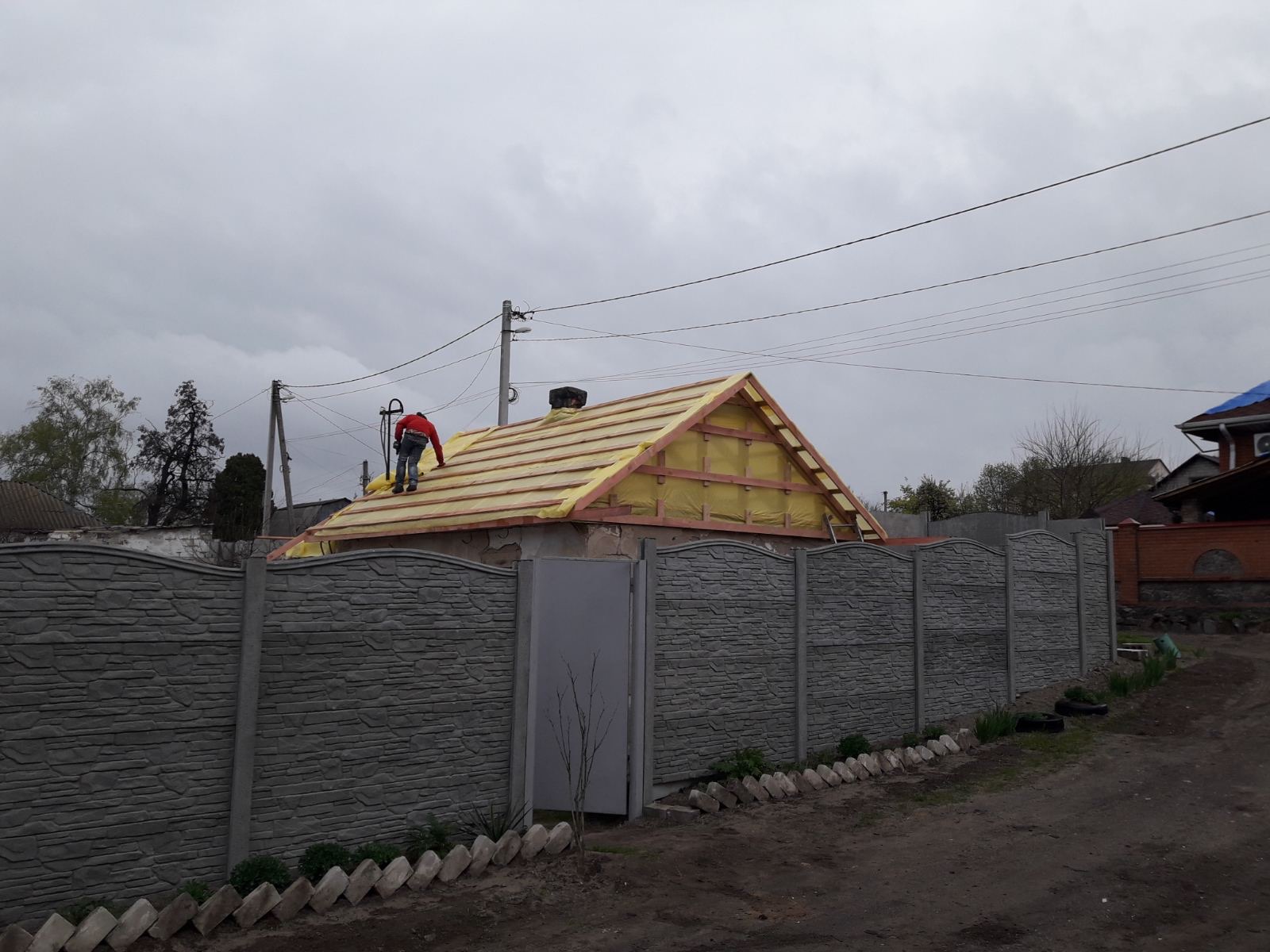 Строительство мансардного этажа: монтаж стропильной системы, монтаж гидроизоляции, монтаж обрешётки, монтаж мансардных окон, монтаж металлочерепицы, монтаж свесов кровли, монтаж водосточной системы. Общая площадь кровли 120 м 2 (срок выполнения работ 15 – 17 рабочих дней). Днепр, ж / м “Приднепровск”. 2021 год
